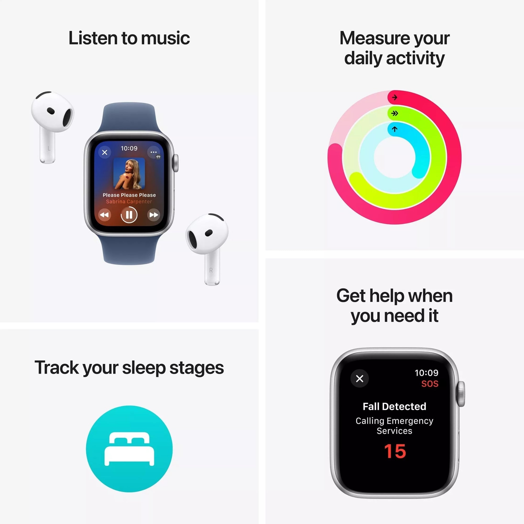 Send a text, take a call, listen to music and podcasts, use Siri or call for help with Emergency SOS. Apple Watch SE (GPS) works with your iPhone or Wi-Fi to keep you connected.