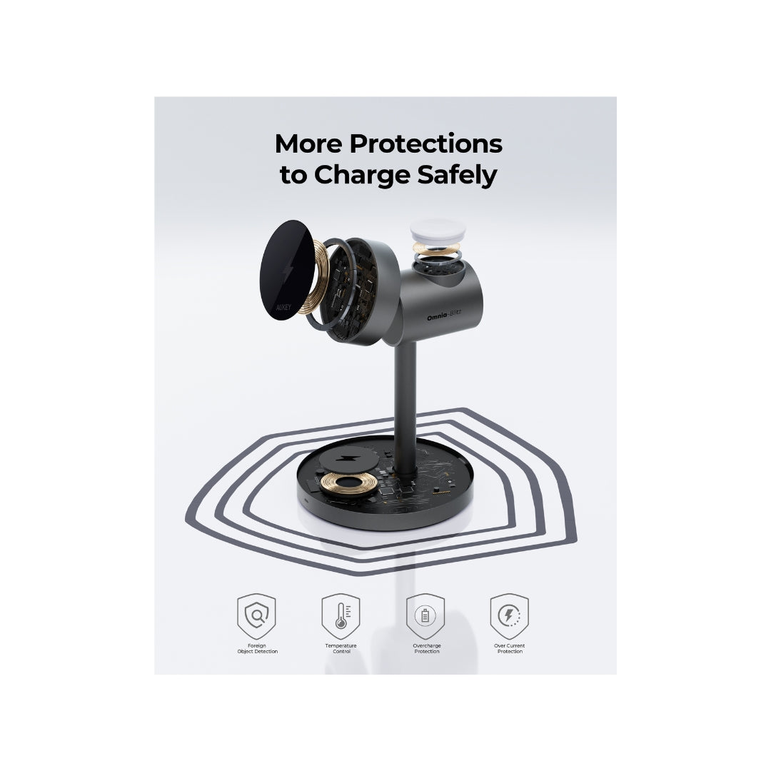 The Aukey 3-in-1 delivers up to 15W of optimized wireless charging for MagSafe-enabled iPhones, ensuring a fast, efficient, and safe power boost every time. Intelligent power distribution automatically adjusts to each device — so you get speed without compromise.
