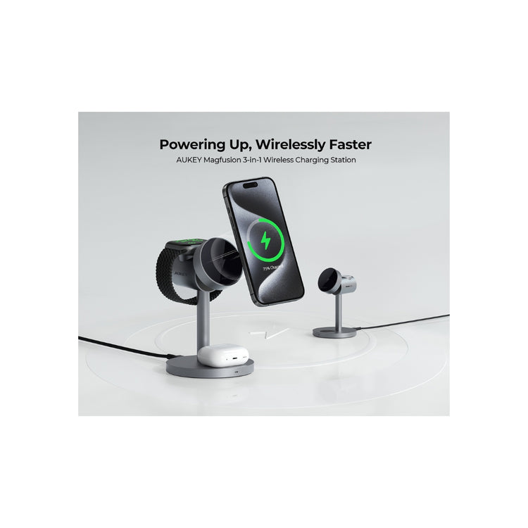 Experience the future of charging with the AUKEY MagFusion™ 3-in-1 Wireless Charging Station, the perfect blend of power, design, and dependability for your Apple ecosystem.