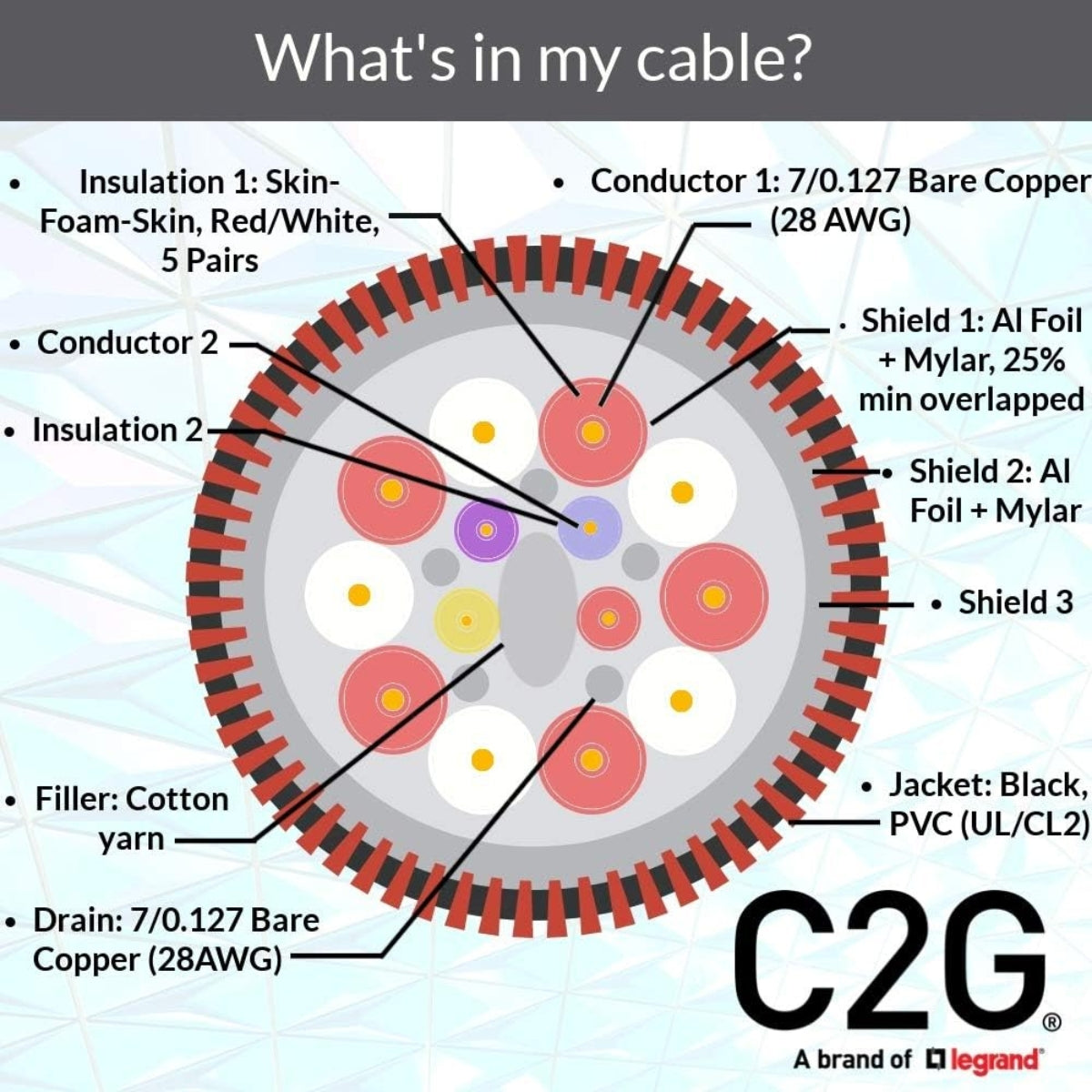 In-Wall CL2-Rated Jacket: The CL2 rating indicates the cable's suitability for in-wall installations, meeting safety standards for residential and commercial environments