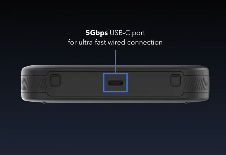 | Ports | 1 × USB-C (up to ~5 Gbps wired) 2 × TS-9 external antenna ports (for improved 5G/4G reception) |