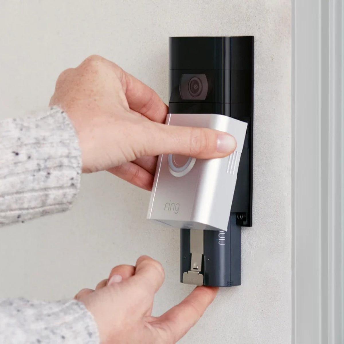 Swap batteries in seconds without removing your Ring Doorbell or Camera from its mount. The spring-loaded mechanism makes recharging fast and hassle-free.