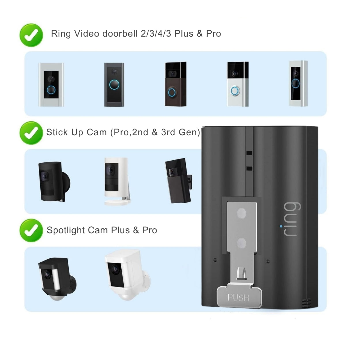 Engineered by Ring for seamless compatibility with Ring Video Doorbell 2, 3, 3 Plus, 4, and select Ring Spotlight and Stick Up Cams.