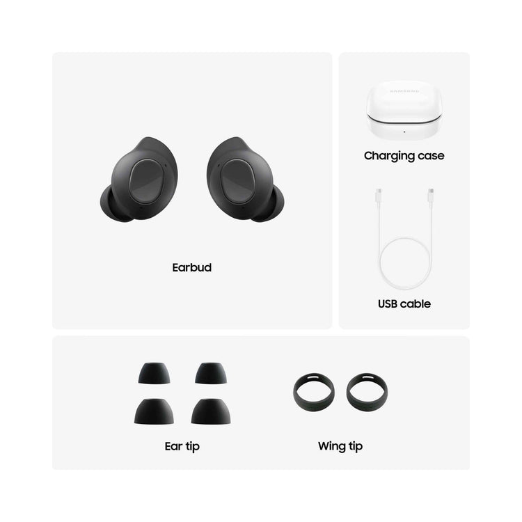 Comfort and Fit: The Galaxy Buds FE's ergonomic design and customizable ear and wing tips ensure a secure, comfortable fit for all-day wear.