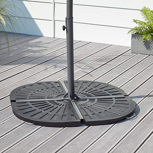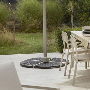 The 4-Piece Parasol Base Set is designed to provide balanced and secure support for cantilever or overhanging parasols. Each piece fits into the cross base, ensuring stability and safety even in breezy conditions.
