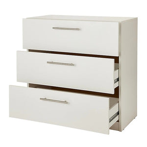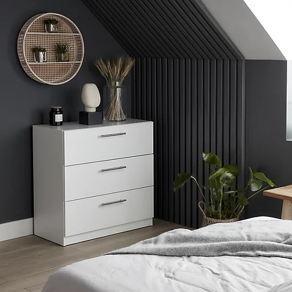 The Vinova Matt White 3 Drawer Chest blends traditional charm with modern practicality. With its soft matte finish and classic silhouette, it's ideal for a variety of bedroom styles, offering reliable storage and timeless appeal.