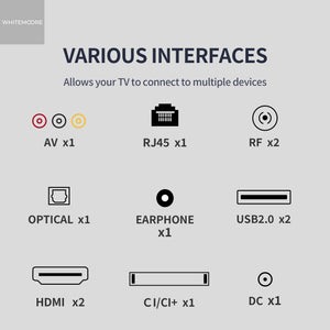 | Max Storage Channels | 1000CH (DVB-T + DVB-C), 6000CH (DVB-S/S2) |