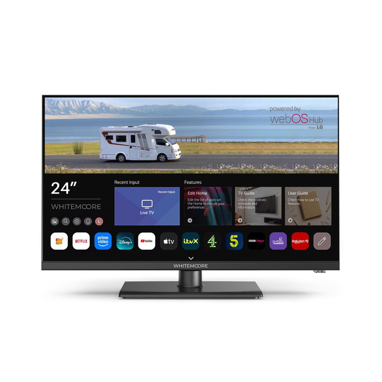 Whitemoore 24” 12V/24V Smart TV – Full HD, Frameless, WebOS, WiFi, Bluetooth, Freeview, Saorview, Netflix, Prime, Airplay, HDMI/USB, for Caravan/Truck/Boat, 3-Year Warranty